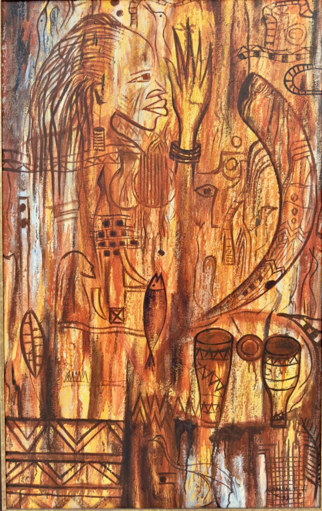 Daniel Kambere Tsongo è nato nel 1963 e si è diplomato all’Accademia di Kinshasa. Ha esposto a Brazzaville, in Guinea Equatoriale, a Dak’Art nel 1996, al Centro Vallone di Bruxelles, a Liegi, Beizing e al Centro Culturale Francese di Kinshasa. È scomparso nel 2009 ma nella sua breve vita è stato pittore di pace, ha fatto della sua arte lo strumento per far “guerra” alla guerra, agli scontri violentissimi nel suo paese, ha armato i bambini dei suoi villaggi di pennelli e colori anziché di fucili, ha offerto loro una prospettiva altra rispetto a chi li voleva piccoli soldati al servizio di banditi senza scrupoli ed interessi lontani.